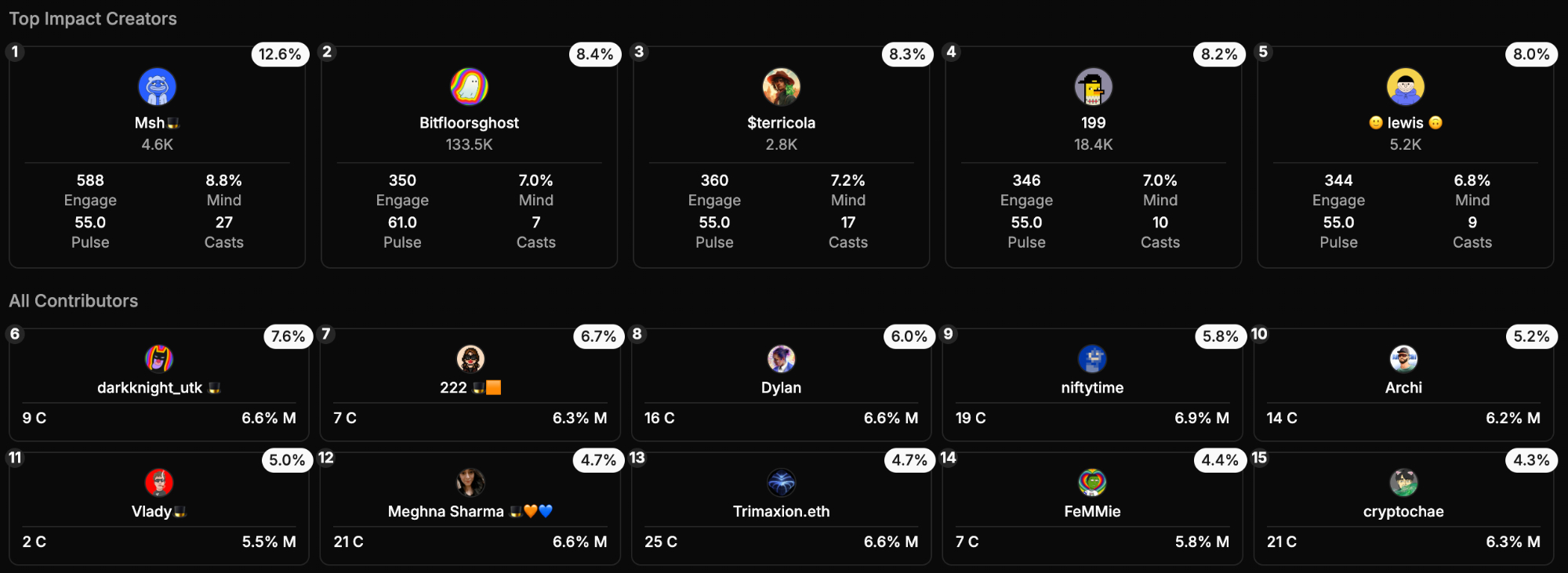 2. @bitfloorsghost.eth - 7 casts, 350 eng (8.4%)