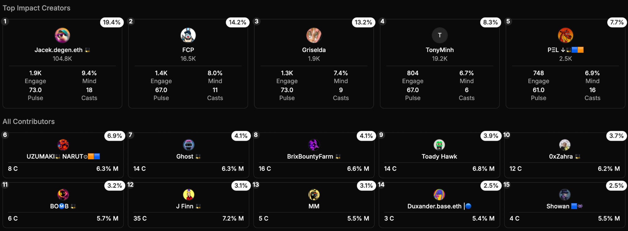 2. @fuckcoolpussy.eth - 11 casts, 1.4K eng (14.2%)