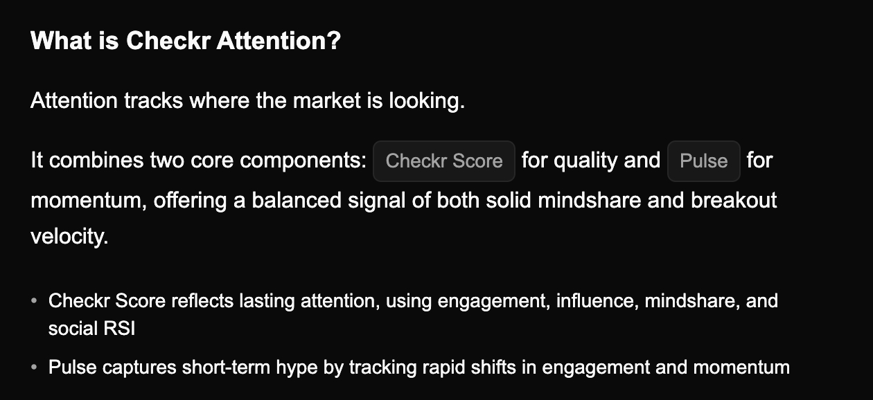 attention combines checkr score and pulse. the second one tracks short-term hype