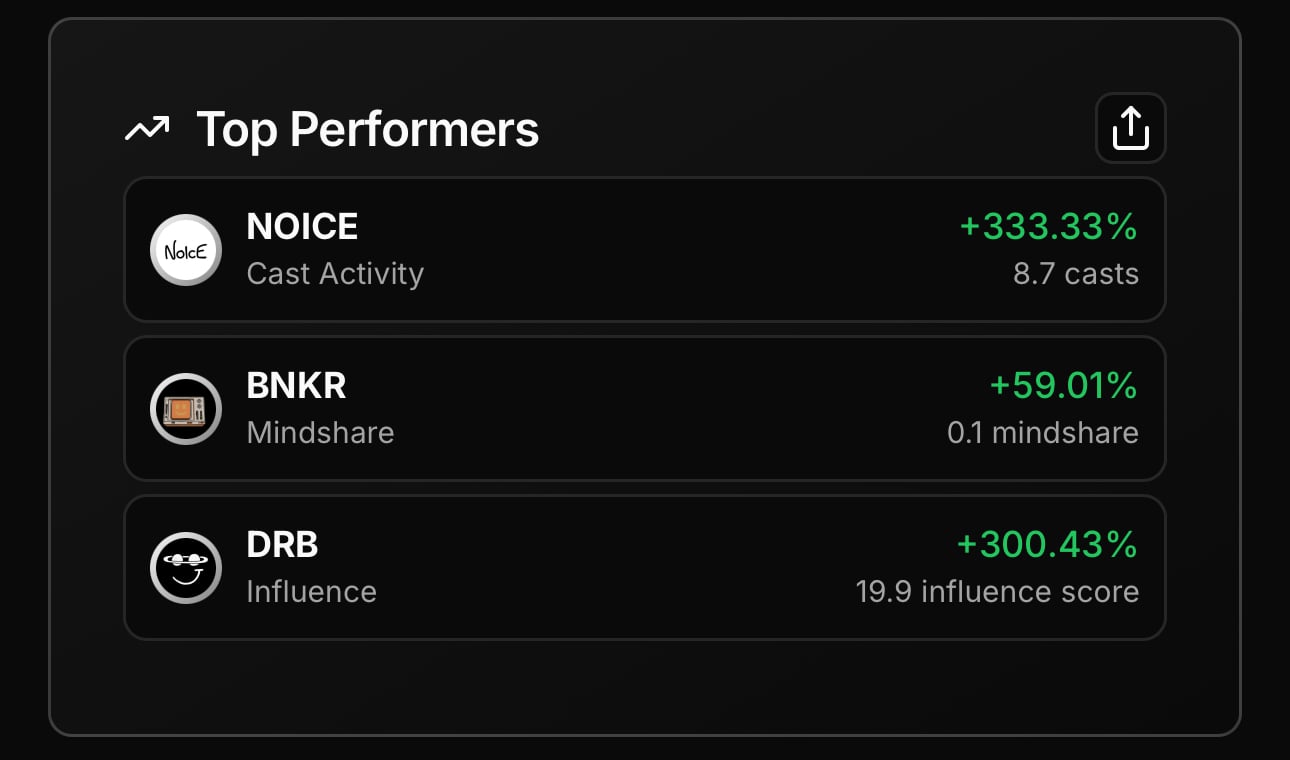1. $NOICE - Cast Activity +333.33%