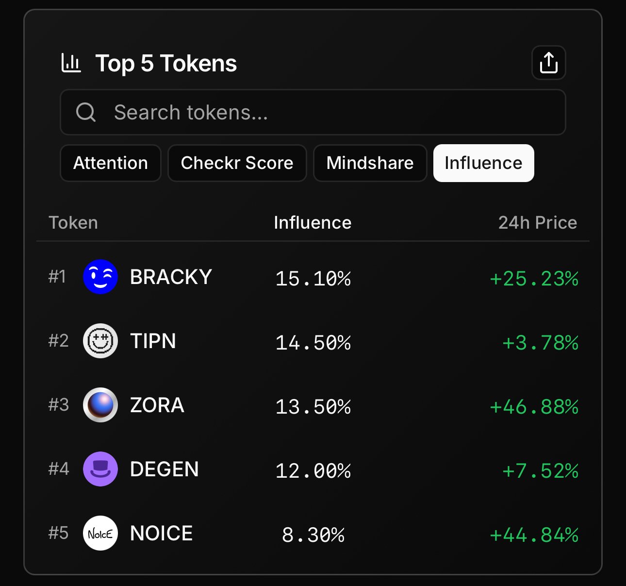 3. $DEGEN - Influence +33.37%