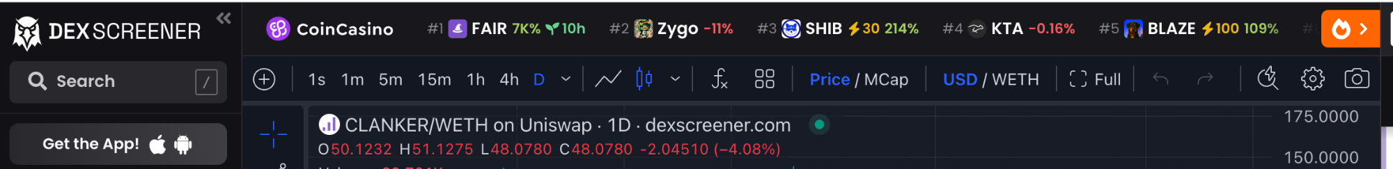 trending in FC -> trending in dex screener