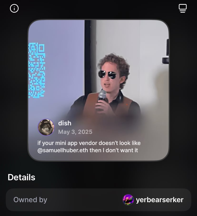@dish’s photo cast of @samuellhuber.eth at FarconNYU