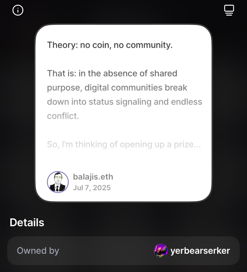 @balajis.eth on how coins energize & organize community (something we help with via Empire Builder 🫡)