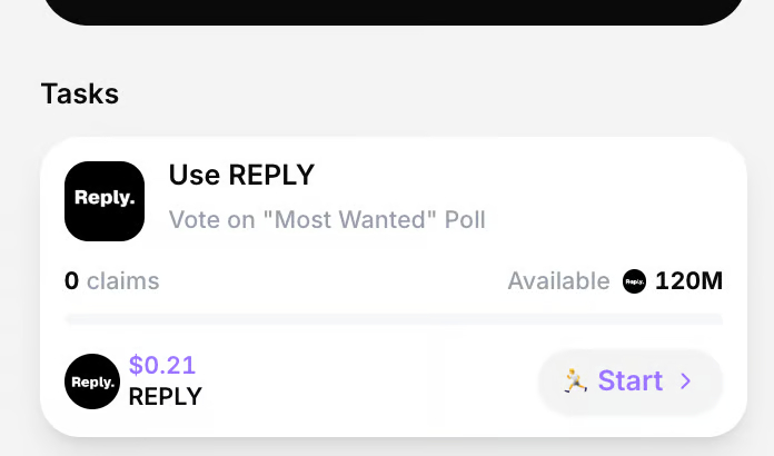 Starting this Monday, the official DAU task will be to vote in this poll. The reward for completing the task will be ~120k $REPLY.